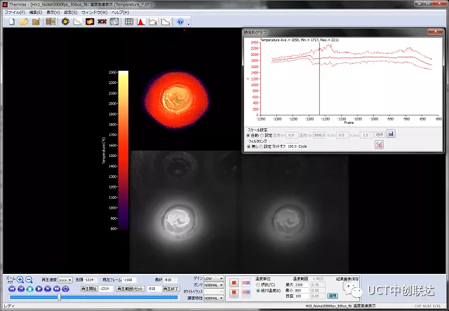 通過TM2S采集的雙波長(zhǎng)圖像可以進(jìn)行比以往更完整的溫度分析。新發(fā)布的溫度分析軟件Thermias具有改進(jìn)的可操作性,并可以進(jìn)行平滑的分析處理。還添加了諸如時(shí)序溫度變化圖的新功能,還安裝了溫度分布直方圖顯示和線輪廓溫度顯示。結(jié)果以運(yùn)動(dòng)圖像(AVI格式)和序列靜止圖像(TIFF,BMP,JPEG格式)輸出。