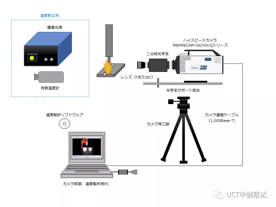 主要配置:雙色分光系統(tǒng)、高速攝像機(jī)MEMRECAM HX/Q/ACS系列、光學(xué)系統(tǒng)支架、PC、鏡頭、溫度分析軟件(Thermias)、標(biāo)準(zhǔn)光源、輻射溫度計(jì)。