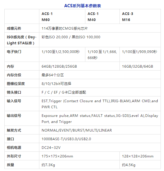 ? ? ? ?ACS系列采用了最新的芯片傳感器,ISO值高達10萬!因此無論是針對弱光環(huán)境,還是以高幀率拍攝熱敏感物體,或者使用光圈極小的放大光學系統(tǒng)的圖像時,也能獲得明亮清晰的圖像。